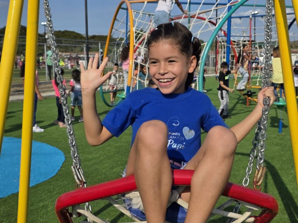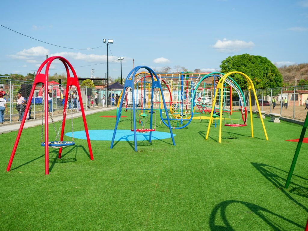 Durante la inauguración del campo deportivo, las autoridades también entregaron un parque para los vecinos más pequeños de El Palmar.