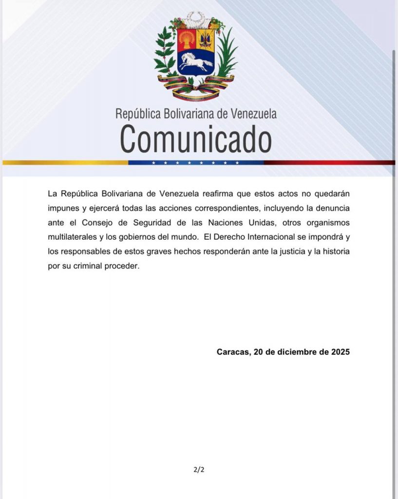 La vicepresidenta Ejecutiva de la República, Delcy Rodríguez, denunció este sábado a través de su canal oficial en Telegram un nuevo y grave acto de piratería perpetrado por militares de los Estados Unidos, quienes secuestraron ilegalmente un segundo buque privado con crudo venezolano en aguas internacionales.